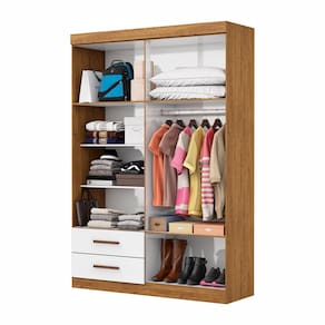 A linha Lu é ideal para quem procura um produto compacto e funcional. Possui 2,00m de altura, 1,185m de largura e 0,47m de profundidade combinado com 2 gavetas, 2 prateleiras e um grande cabideiro, deixando o produto com uma ótima divisão interna. O maleiro é ideal para guardar malas, cobertores, edredons. O cabideiro além de resistente, é ideal para pendurar pares de blusas, camisas acessórios. As prateleiras são perfeitas para colocar roupas como blusas, shorts, regatas, kits de maquiagem, toalhas, caixinhas com acessórios e bolsas menores. As gavetas fixadas sobre corrediças metálicas, são ideais para guardas blusas dobradas, shorts, malhas e roupas íntimas. Estrutura do produto em MDP.