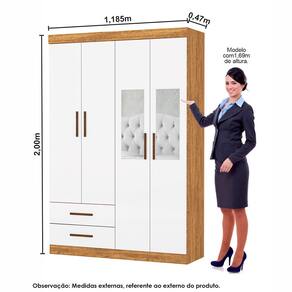 Guarda Roupa Casal Lu 4 Portas 2 Gavetas com Espelho Carioca Móveis - Mel