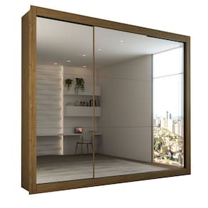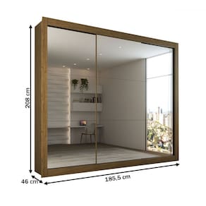 O(a) Guarda-Roupa Casal Luiza 3 Portas de Correr 4 Gavetas Espelhado Cinamomo - Loja é produzido em MDP na escala de brilho Brilho, e possui um grau de dificuldade de montagem: Médio.