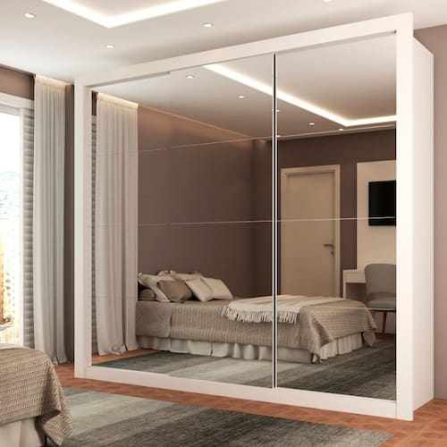 O(a) Guarda-Roupa Casal Luiza Diamantina 3 Portas de Correr 4 Gavetas Espelhado Branco - Loja é produzido em MDP na escala de brilho Brilho, e possui um grau de dificuldade de montagem: Médio.