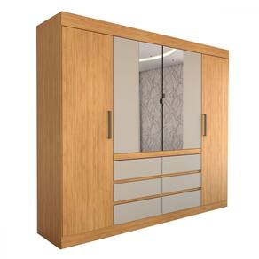 O(a) Guarda-Roupa Casal Luxuria 4 Portas 6 Gavetas com Espelho Cinamomo/Off White - Loja é produzido em MDP na escala de brilho Semi-Brilho, e possui um grau de dificuldade de montagem: Médio.