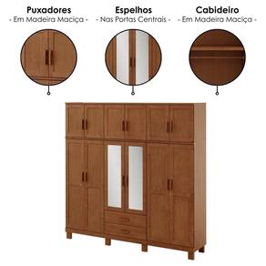 Madeira Maciça Taeda e MDFGuarda Roupa Casal 1292C, inspiração rústica que eleva a personalidade do seu quarto! Conta com estrutura em Madeira Maciça Taeda com espessuras de 12/14/16 mm (travessa frontal 25 mm e fundo de 2,5 mm), acabamento em pintura brilho 10%. Composto por Maleiro superior equipado com portas com detalhes emoldurados, dobradiças metálicas e puxadores em madeira maciça, assim como nas portas inferiores, sendo 3 delas com fechamento por chave e as 2 centrais com espelhos de 3 mm. Acompanha também amplas prateleiras internas (MDF 12 mm), cabideiro em madeira maciça, gavetas externas com corrediças telescópicas e pés retos reforçados, também em Madeira Maciça de 40 mm. Produto será entregue em 03 volumes.