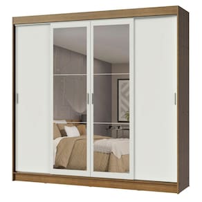 Itens inclusos: - Quatro (4) portas de correr com sistema anti-descarrilhamento, sendo duas delas com espelhos - Quatro (4) puxadores em PVC - Três (3) gavetas internas com corrediças metálicas - Dois (2) cabideiros em alumínio