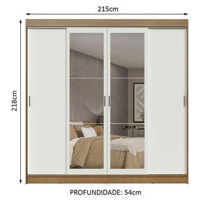 Medidas totais do guarda-roupa: 218 cm de altura x 215 cm de largura x 54 cm de profundidade.