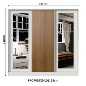 Medidas totais do armário: 218 cm de altura x 231 cm de largura x 55 cm de profundidade.