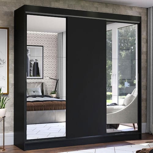 Guarda-Roupa Casal Madesa Istambul 3 Portas de Correr com Espelhos 3 Gavetas - Preto - Preto