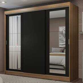 Itens inclusos: - Três (3) portas de correr com sistema anti-descarrilhamento, sendo duas delas com espelhos - Dois (2) puxadores em PVC - Três (3) gavetas internas com corrediças metálicas - Dois (2) cabideiros em alumínio