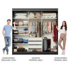 Itens inclusos: - Três (3) portas de correr com sistema anti-descarrilhamento, todas com espelhos - Dois (2) puxadores em PVC - Três (3) gavetas internas com corrediças metálicas - Dois (2) cabideiros em alumínio