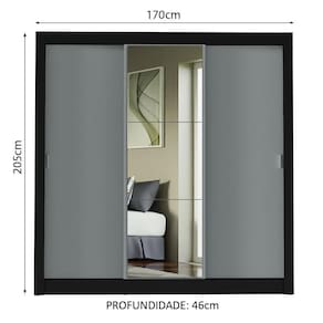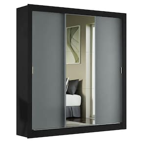 Guarda-Roupa Casal Madesa Mônaco 3 Portas de Correr com Espelho - Preto/Cinza