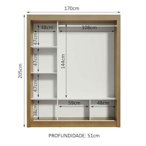 Medidas totais do armário: 205 cm de altura x 170 cm de largura x 51 cm de profundidade.