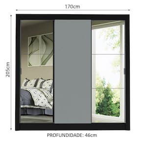 - Três (3) portas de correr, sendo uma (1) de madeira e duas (2) com espelhos e puxadores em PVC