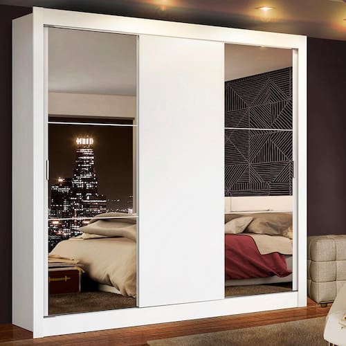 Itens inclusos: - Três (3) prateleiras totalizando seis (6) nichos - Um (1) cabideiro grande - Três (3) portas de correr sendo uma (1) de madeira e duas (2) com espelhos e puxadores em PVC