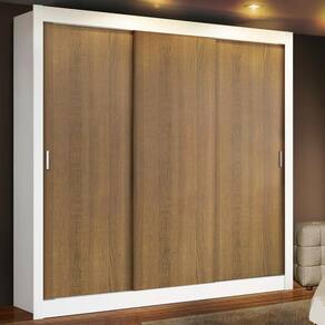 Itens inclusos: - Três (3) prateleiras totalizando seis (6) nichos - Um (1) cabideiro grande - Três (3) portas de correr de madeira com 2 puxadores em PVC