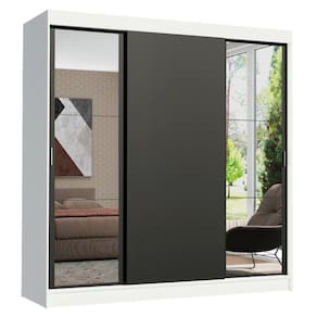 Itens inclusos: - Oito (8) nichos internos - Quatro (4) gavetas internas - Três (3) cabideiros - Três (3) portas de correr, sendo uma de madeira e duas (2) com espelhos e puxadores em PVC