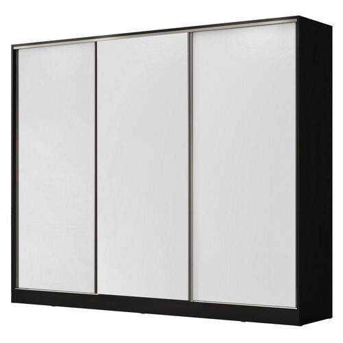 Guarda Roupa Casal 100% MDF Madesa Zurique 3 Portas de Correr Preto Branco