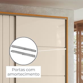 Feito para você para quem valoriza organização, beleza e praticidade! O roupeiro Monet conta com 2 portas de correr com trilho de metal e sistema de amortecimento, proporcionando um fechamento suave e silencioso, perfeito para não interromper a tranquilidade do quarto.
