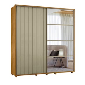 Fabricado em MDF de 6, 15 e 25 mm, o guarda-roupa possui acabamento em pintura UV, que oferece mais resistência e durabilidade à superfície. O destaque fica por conta da moldura envoltória de 25 mm e o ripado angular, que imprimem um toque moderno e exclusivo ao móvel.