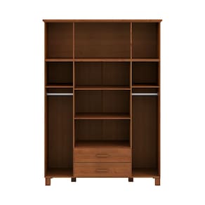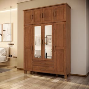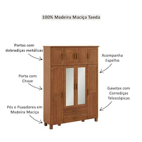 Características: Estrutura em Madeira Maciça Pinus Taeda de reflorestamento Pintura Semi-brilho 08 Portas com dobradiças metálicas 02 Gavetas com corrediças telescópica Maleiro na parte superior (Montagem Bipartida) Amplo espaço para armazenamento Possui espelhos Cabideiros em alumínio (peso máximo suportado 08kg distribuídos) Peso máximo suportado pelas Prateleiras 10 kg distribuídos Peso máximo suportado pelas Gavetas 05kg distribuídos