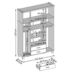Dimensões: Altura: 221 cm Largura: 157,2 cm Profundidade: 50,5 cm