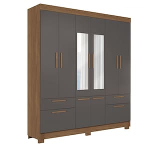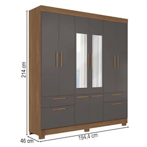 O(a) Guarda-Roupa Casal Marilena 6 Portas 9 Gavetas Jatoba/Grafite com Espelho - Pnr Móveis é produzido em MDF, MDP e HDF na escala de brilho Fosco, e possui um grau de dificuldade de montagem: Médio.
