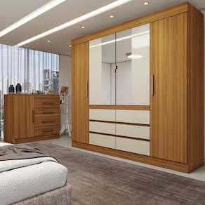 O(a) Guarda-Roupa Casal Marrom 4 Portas 6 Gavetas 1 Porta 4 Gavetas Espelho Cinamomo/Off White é produzido em MDF na escala de brilho Semi-Brilho, e possui um grau de dificuldade de montagem: Médio.