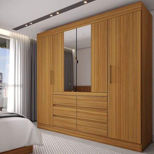 O(a) Guarda-Roupa Casal Marrom 4 Portas 6 Gavetas com Espelho Freijó - Loja é produzido em MDP na escala de brilho Semi-Brilho, e possui um grau de dificuldade de montagem: Médio.