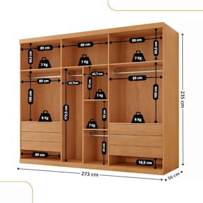 Dimensoes do Roupeiro: Altura: 235 cm Largura: 273 cm Profundidade: 56 cm