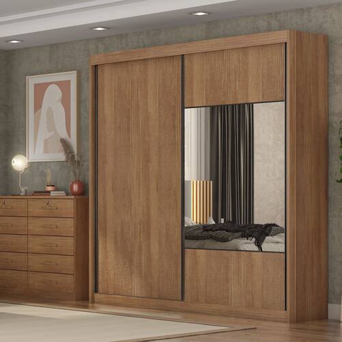 100% MDF, perfil puxador em alumínio bronze, colunado 25cm, trilho inferior em alumínio e roldanas com amortecedores, interno ele e ela, espelho inteiro, fundo inteiriço, roldana superior com guia zero e freio, gavetas internas com puxadores e corrediças telescópicas, cabideiro e calceiro em alumínio. Acabamento da Prateleira: Pintura Texturizada UV Escala de Brilho da Prateleira: Semi-Fosco Possui Cabideiros: Sim Acabamento da Gaveta: Pintura Texturizada UV Escala de Brilho da Gaveta: Semi-Fosco Material do Puxador da Gaveta: ABS Possui Organizador de Gaveta: Não Acabamento da Porta: Pintura Texturizada UV Escala de Brilho da Porta: Semi-Fosco Material do Puxador da Porta: Alumínio Altura do Espelho: 120 cm Ambiente Principal: Quarto codigo_ean: 7900288147172 Complexidade da Montagem: Média: pode ser montado por mais de uma pessoa e/ou necessite de maior conhecimento para montagem Cor: Cumaru Cor do Produto: Cumaru Escala de Brilho: Semi-Fosco Espessura da Estrutura (mm): 12 mm Espessura das Portas (mm): 15 mm Espessura das Prateleiras (mm): 12 mm Espessura do Espelho: 3 mm Espessura do Fundo (mm): 3 mm Espessura do Fundo das Gavetas (mm): 3 mm Formato do Espelho: Retangular Gaveta com Chave: Não Itens Inclusos: 1 Guarda-Roupa, Kit de Ferragens e Manual de Montagem Largura do Espelho: 100 cm Linha ou Coleção: Trieste Manual de Montagem e Instalação: https://product-hub-prd.madeiramadeira.com.br/705875436/documents/d89e65f7-a3bf-4c95-86a5-81f34bd71204291334235817467317596709.pdf Marca: Siena Móveis Material da Gaveta: MDF Material da Porta: MDF Material da Prateleira: MDF Material Principal: MDF modular: Não Montagem Flex: Não Necessita Montagem: Sim Nicho com Cabideiro: Sim Origem do Produto: Nacional Peso: 213 kg Peso Máximo por Gaveta: 5 kg Peso Máximo por Prateleira: 10 kg Possui Calceiros: Não Possui Espaço para Vestidos Longos: Não Possui Espelho: Sim Possui iluminação: Não Possui Penteadeira: Não Possui Pés: Não Possui Portas: Sim Possui Prateleiras: Sim Produto Montado: Sim Quantidade de Cabideiros: 02 Cabideiros Quantidade de Espelho: 01 Quantidade de Gavetas: 08 Gavetas Quantidade de Portas com Espelhos: 1 Porta com Espelho Quantidade de Prateleiras: 10 Prateleiras Recomendações de Uso, Manutenção e Limpeza: Limpar com flanela ou pano macio seco, não utilizar produtos abrasivos, desengordurantes, álcool ou solventes. Não expor produto diretamente à luz solar e à umidade. Sistema de Montagem: Parafusos, Cavilhas e outros Tipo de Corrediça da Gaveta: Metálica Telescópica Tipo de Dobradiça/Corrediça da Porta: Alumínio Tipo de Fixação do Espelho: Fita Dupla Face Tipo de Gaveta: Interna Tipo de Guarda-Roupa: Casal Tipo de Puxador da Gaveta: Externo Tipo de Puxador da Porta: Externo