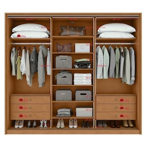 Transforme seu quarto com o Vitta 270: moderno, espaçoso e funcional. Produzido em MDF com acabamento premium, ele conta com 3 portas deslizantes. São 10 prateleiras, 6 gavetas com corrediças telescópicas (incluindo gaveta com colmeia organizadora), maleiro individual e amplo espaço interno com 13 nichos ideal para casais!
