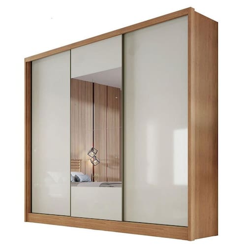 Guarda Roupa Casal Medelim 3 Portas 4 Gavetas Cumaru 25 Fendi com Espelho ? Novo Horizonte