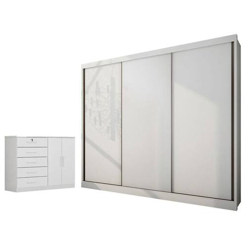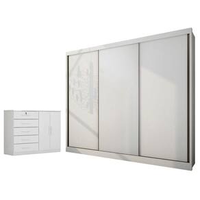 Guarda Roupa Casal Medelim e Cômoda Seul Neve - Novo Horizonte
