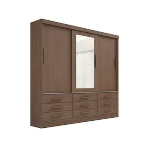 Guarda Roupa Casal Meridian Com Espelho 3 Portas 9 Gavetas Sem Pés D' Doro Castanho