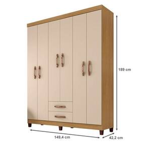 Guarda Roupa Casal Modena 6 Portas e Armário Multiuso Egito Carvalho Americano Off White Incorplac