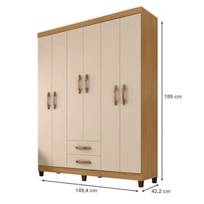 Guarda Roupa Casal Módena 6 Portas Carvalho Americano Off White Incorplac