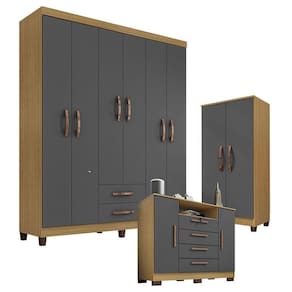 Guarda Roupa Casal Modena com Cômoda Madri e Armário Multiuso Recife Carvalho Americano Grafite – Incorplac