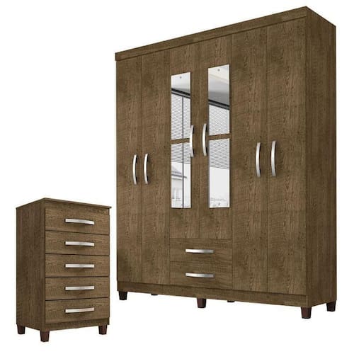 Guarda Roupa Casal Modena com Espelho Cômoda Cannes 5 Gavetas Malbec Incorplac