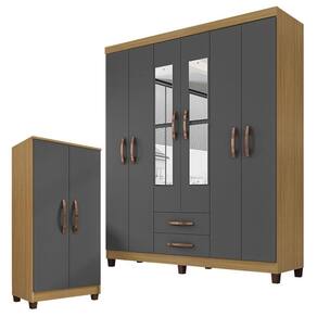 Guarda Roupa Casal Modena com Espelho e Armário Multiuso Recife Carvalho Americano Grafite – Incorplac