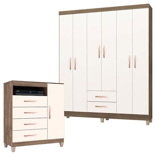 Buscando os móveis para o quarto?Aqui você encontra esse lindo ambiente composto pelo Guarda Roupa Casal Modena e Cômoda Cannes, desenvolvidos pela Incorplac possui amplo espaço e ótima repartição, confira e aproveite!