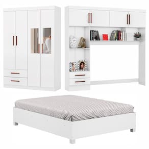 O Guarda Roupa Casal Modulado 4 Portas Hercules 4 Portas, com espelho e ideal para otimizar o espaco do ambiente e deixar tudo organizado. Possui Maleiros, 2 nichos externos, 3 prateleiras, 8 portas, 4 gavetas com corredicas metalicas. Possui pintura UV, que oferece ao produto resistencia e durabilidade. A Cama Casal com 1,93 de comprimento e 1,44m de largura e a melhor opcao para trazer conforto e elegancia ao seu quarto. Produzida em MDP, com estrado de madeira reflorestada e pes de PVC garante durabilidade e resistencia ao movel. Acabamento resistente com impressao UV e verniz de alta duracao. Ideal para colchoes de 1380mm. Nao acompanha o colchao.
