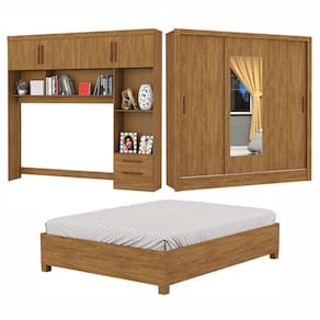 O Guarda Roupa Casal Modulado 7 Portas Santiago com espelho e Cama Casal é ideal para otimizar o espaço do ambiente e deixar tudo organizado. Possui Maleiros, 2 nicho externos, 6 prateleiras, 7 portas, 5 gavetas com corrediças metálicas . Possui pintura UV, que oferece ao produto resistência e durabilidade. A Cama Casal com 1,93 de comprimento e 1,44m de largura é a melhor opção para trazer conforto e elegância ao seu quarto. Produzida em MDP, com estrado de madeira reflorestada e pés de PVC garante durabilidade e resistência ao móvel. Acabamento resistente com impressão UV e verniz de alta duração. Ideal para colchões de 138cm. Não acompanha o colchão. Acabamento da Prateleira: Pintura UV Escala de Brilho da Prateleira: Fosco Possui Cabideiros: 01 Acabamento da Gaveta: Pintura UV Possui Organizador de Gaveta: Não Acabamento da Porta: Pintura UV Escala de Brilho da Porta: Semi-Brilho Altura do Espelho: 400 cm Ambiente Principal: Quarto codigo_ean: 7900288050878 Complexidade da Montagem: Média: pode ser montado por mais de uma pessoa e/ou necessite de maior conhecimento para montagem Cor: Cinamomo Cor do Produto: Cinamomo Cor Interna: Branco Escala de Brilho: Fosco Espessura da Estrutura (mm): 12 mm Espessura das Portas (mm): 15 mm Espessura das Prateleiras (mm): 12 mm Espessura do Espelho: 3 mm Espessura do Fundo (mm): 3 mm Espessura do Fundo das Gavetas (mm): 3 mm Fita Integrada: Sim Formato do Espelho: Retangular Itens Inclusos: 01 Guarda-Roupa + 1 Cama de Casal + Manual de Montagem Largura do Espelho: 429 cm Linha ou Coleção: Modulado Santiago 7 Pts Manual de Montagem e Instalação: https://product-hub-prd.madeiramadeira.com.br/971528/documents/77482cb8-ace8-47ea-84c4-4434fe0f0c3626487574041737978636436.pdf Marca: Carioca Móveis Material da Gaveta: MDP/HDF Material da Porta: MDP Material da Prateleira: MDP Material Principal: MDP Medida de Cada Item: 204x200x35 e 179x200x47 modular: Sim Necessita Montagem: Sim Origem do Produto: Nacional Peso: 181,6 kg Peso Máximo por Gaveta: 5 kg Peso Máximo por Prateleira: 5 kg Possui Calceiros: Não Possui Espelho: Sim Possui Pés: Não Possui Portas: Sim Possui Prateleiras: Sim Produto Montado: Sim Quantidade de Espelho: 03 Espelhos com Tamanhos Iguais Quantidade de Portas com Espelhos: 1 Porta com Espelho Recomendações de Uso, Manutenção e Limpeza: Limpar com flanela ou pano macio seco, não utilizar produtos abrasivos, desengordurantes, álcool ou solvente. Não expor o produto diretamente à luz solar e à umidade. Sistema de Montagem: Prafusos e Cavilhas. Tipo de Corrediça da Gaveta: Metálica Simples Tipo de Dobradiça/Corrediça da Porta: Aço Tipo de Fixação do Espelho: Fita Dupla Face Tipo de Gaveta: Externa Tipo de Guarda-Roupa: Modulado Casal Tipo de Puxador da Gaveta: Externo Tipo de Puxador da Porta: Externo