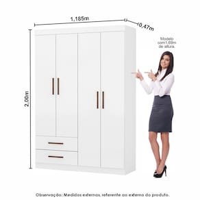 Guarda Roupa Hercules 4 Portas Dimensões: Altura: 200 cm Largura: 119 cm Profundidade: 47 cm