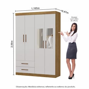 Guarda Roupa Hercules 4 Portas: Dimensões: Altura: 200 cm Largura: 119 cm Profundidade: 47 cm