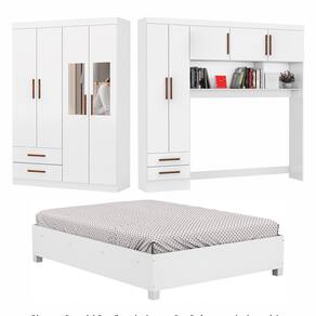 O Guarda Roupa Casal Modulado 5 Portas Hercules 4 Portas, com espelho é ideal para otimizar o espaço do ambiente e deixar tudo organizado. Possui Maleiros, 2 nichos externos, 3 prateleiras, 9 portas, 4 gavetas com corrediças metálicas. Possui pintura UV, que oferece ao produto resistência e durabilidade. A Cama Casal com 1,93 de comprimento e 1,44m de largura é a melhor opção para trazer conforto e elegância ao seu quarto. Produzida em MDP, com estrado de madeira reflorestada e pés de PVC garante durabilidade e resistência ao móvel. Acabamento resistente com impressão UV e verniz de alta duração. Ideal para colchões de 1380mm. Não acompanha o colchão.