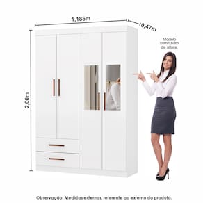 Guarda Roupa Hercules 4 Portas: Dimensões: Altura: 200 cm Largura: 119 cm Profundidade: 47 cm