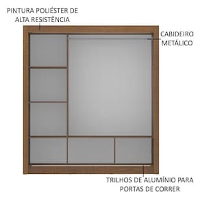 O aproveitamento interno é ideal para um casal. São diversos nichos que facilitam a organização de roupas, calçados e acessórios. O tubo cabideiro é metálico, muito resistente e possui espaço para roupas longas.