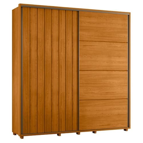 Guarda Roupa Casal Monet Ripado 2 Portas Deslizantes Cinamomo - Madetec Cinamomo Guarda Roupa Casal Monet Ripado 2 Portas Deslizantes - Madetec Design moderno, funcionalidade e elegância em um só móvel. O Guarda-Roupa Monet conta com 2 portas deslizantes com amortecimento, trilhos de alumínio e perfis metálicos que evitam empenamentos. Destaque para o ripado angular em uma das portas, que traz charme e sofisticação ao ambiente. Internamente, oferece 4 gavetas com corrediças telescópicas, cabideiros extensíveis de alumínio, prateleiras e nichos para uma organização eficiente. Estrutura em MDF com pintura UV, moldura envoltória de 25mm e pés em poliestireno de 50mm garantem resistência e durabilidade. ESPECIFICAÇÕES: - Estrutura em MDF - Pintura UV - 2 Portas deslizantes com amortecimento - Trilhos em alumínio - Perfis metálicos antiempenamento - Ripado angular em uma porta - Puxadores de alumínio nas portas - 4 Gavetas internas - Corrediças telescópicas - Cabideiros extensíveis - Cabideiros de alumínio - Interna com nichos e prateleiras - Moldura envoltória de 25mm - Pés em poliestireno de 50mm