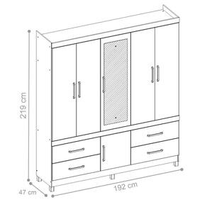 Feito em MDP, além de possuir 4 gavetas, 6 portas e 6 prateleiras internas. Além disso, acompanha 1 espelho externo ótimo para o design do seu quarto