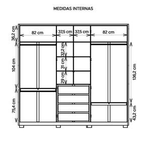 Dimensões do produto montado: Altura: 234,2 cm Largura: 250 cm Profundidade: 57 cm Peso: 179,5 kg