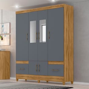 ESPECIFICAÇÕES: Estrutura em MDP Pintura UV 6 Portas Dobradiças metálicas Interna com prateleiras 2 Gavetas Corrediças metálicas Cabideiro Espelho Puxadores na cor bronze Pés em PVC