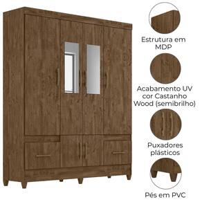 Projetado para atender às necessidades do dia a dia, o Guarda-Roupa Casal MS912 oferece espaço e modernidade. Estrutura em MDP (15/ 12 mm) e acabamento em pintura UV. Composto por portas com dobradiças metálicas (sendo 2 com espelho), cabideiro interno (alumínio), prateleiras e gavetas com corrediças metálicas. Produto com dupla opção de montagem: pés em PVC ou sapatas plásticas (2 mm) conforme preferência do cliente. Este produto será entregue em 03 volumes.